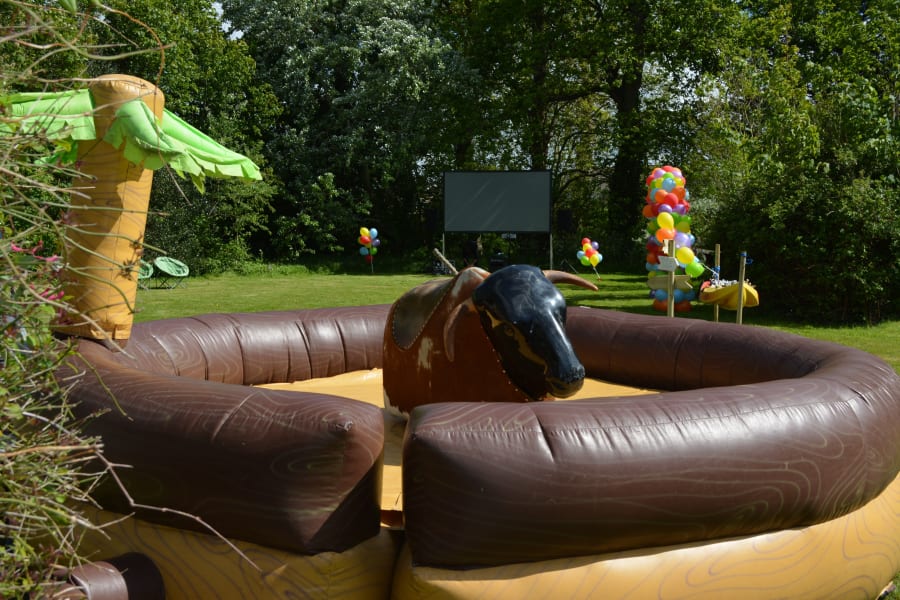 Our Rodeo Bull price includes 3 hours with one of our friendly staff operating. We will travel further through Devon and Cornwall than our post code checker show with the bull so please call if it flags as area not covered. This option is better if you have lower ceilings as bull one has a raised rear panel. of the range unit comes with a large timer and 3 fixed speed programmes to keep things fair if you choose to run your day as a competition. The inflatable base is walled for extra safety. We are pleased to be one of only a few companies offering a rodeo bull in North Devon and North Cornwall.