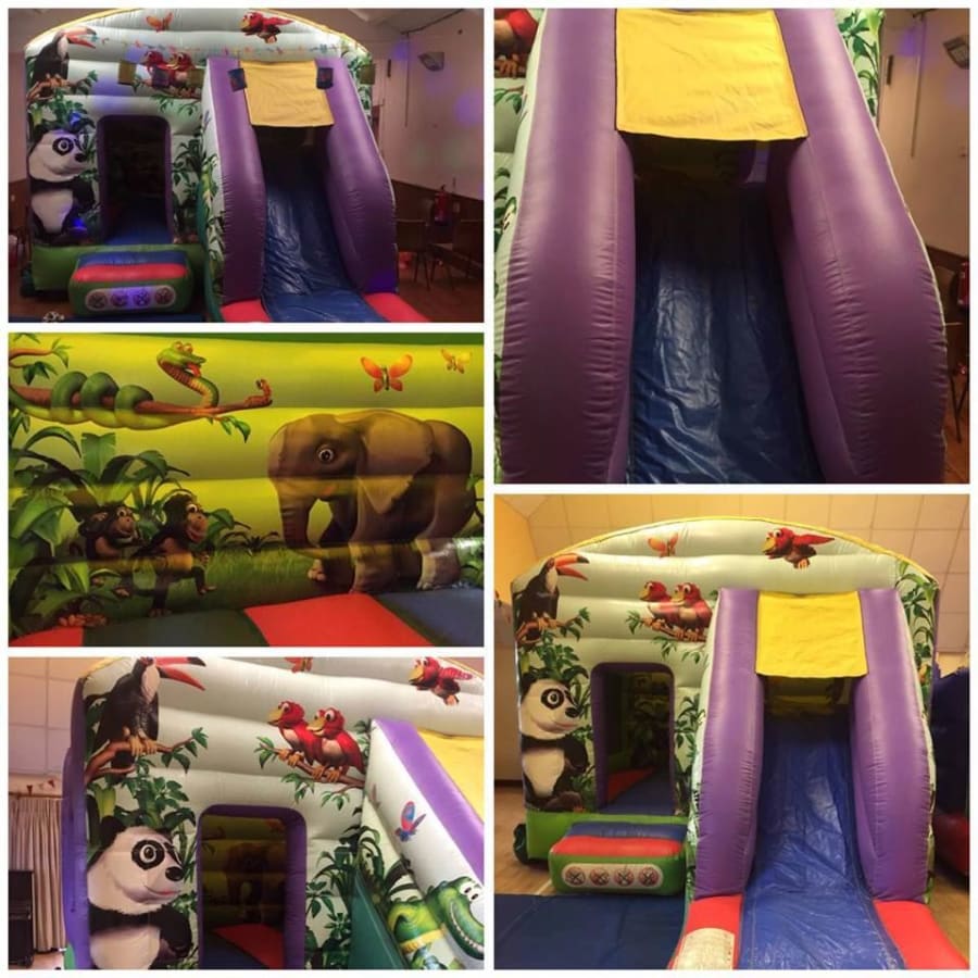 The Jungle bounce and slide has a good size castle bed, a slide and jungle friends throughout the castle. We really like the artwork on this one,